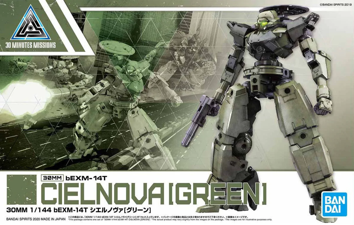 The Bandai 1/144 30MM bEXM‑14T Cielnova (Green) – 2518687 is a standout model from the 30 Minutes Missions line, crafted as a Byron Army-exclusive unit designed to complement the Portanova frame. This kit features distinctive oversized legs, elongated forearms, and a unique extendable backpack, all sculpted with modular design in mind so that builders can customize and combine components creatively with other 30MM kits.