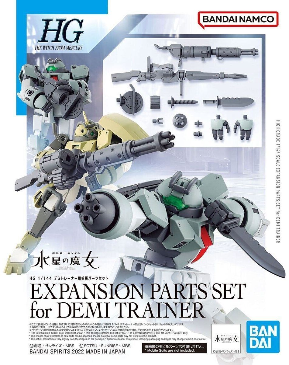 Enhance your Mobile Suit Gundam: The Witch from Mercury collection with the Bandai 1/144 HG Expansion Parts Set for Demi Trainer – 2604771, a specialized add-on kit designed to retrofit the HGWFM 09 Demi Trainer (sold separately) with a robust array of armaments and accessories.